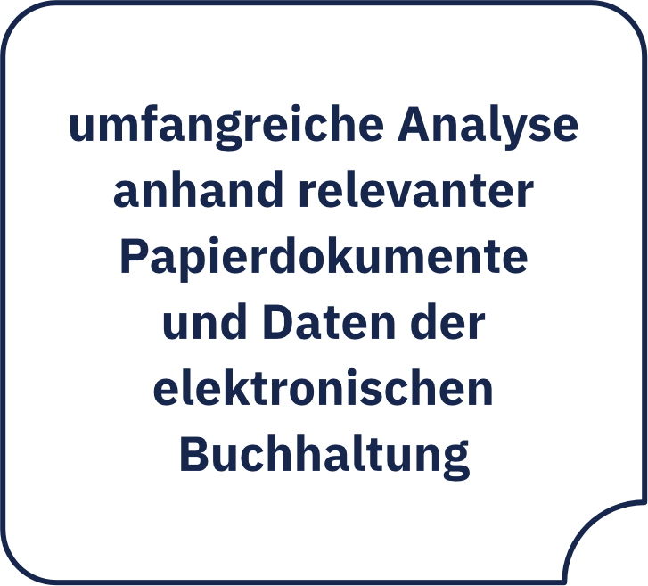 umfangreiche Analyse anhand relevanter Papierdokumente und Daten der elektronischen Buchhaltung